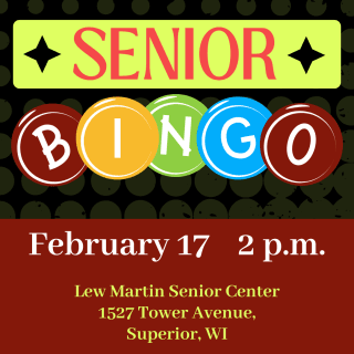 Come to the Lew Martin Senior Center (1527 Tower Avenue) on February 17 at 2 p.m. for Senior Bingo and play bingo with other seniors for a chance to win great prizes! No registration required.