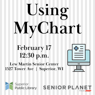 Has your doctor or healthcare provider ever mentioned MyChart? Come to the Lew Martin Senior Center (1527 Tower Avenue in Superior) on February 17 at 12:30 p.m. for a FREE Senior Planet presentation led by library staff and learn about this electronic health-record portal. We’ll …