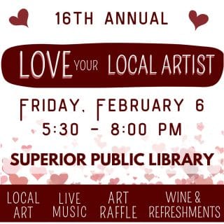 Join us Friday, February 6 from 5:30-8 p.m. for our 16th annual Love Your Local Artist event! This annual celebration of libraries, art, and community will feature 40+ local artists selling paintings, pottery, photographs, jewelry, handmade cards, fabric items, and much more! Enjoy live music, …