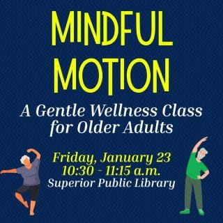 Don’t miss our next Mindful Motion class for older adults on January 23 at 10:30 a.m. Led by instructors from the Lake Superior YMCA, this class combines gentle stretches with simple breathing and meditation techniques to help improve flexibility, reduce stress, and promote overall well-being. …