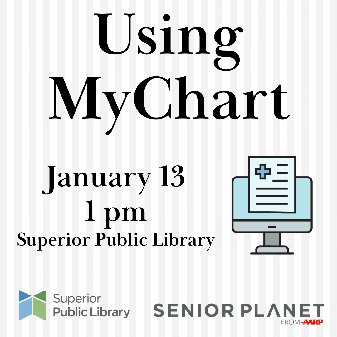 Has your doctor or healthcare provider ever mentioned MyChart? Come to the library on January 13 at 1 p.m. and learn about this electronic health-record portal that works both in a web browser and app. We’ll go over how MyChart can help you keep all your health information in one place, communicate with your providers, and have a virtual visit. You’ll also learn about the portal’s privacy and security features.