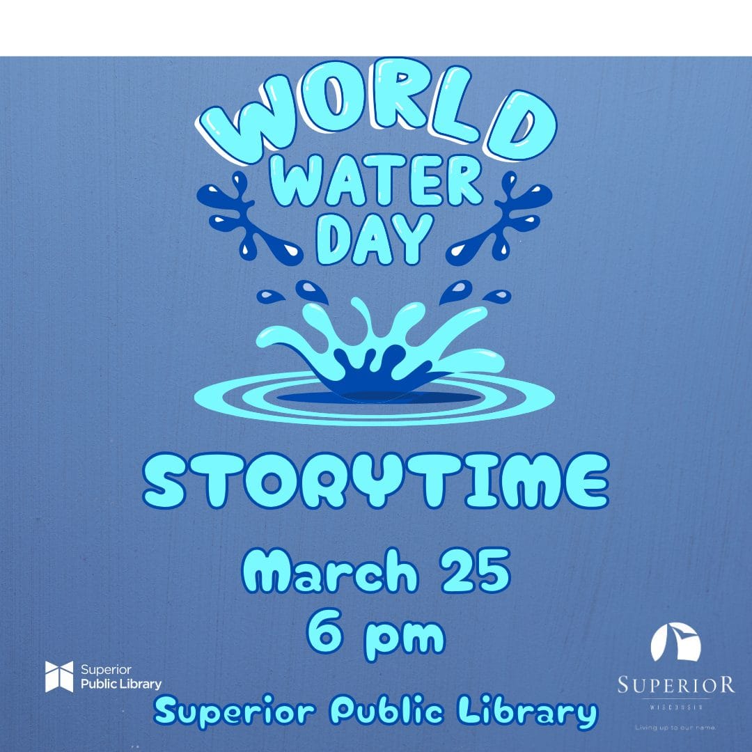 FeaturedSuperior Public Library 1530 Tower Ave., Superior, WI, United StatesWater is important for you, me, and the trees! Help us celebrate World Water Day at the library on March 25 at 6 p.m. with a special Storytime with Megan Högfeldt from the city of Superior's Environmental Services division and enjoy a variety of children's books about water! No registration required!
