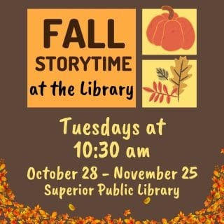 ![]() ![]() Would you like to become more familiar with technology? A digital navigator from the Northwest Wisconsin Workforce Investment Board offers drop-in CLICK & Learn sessions every Tuesday from 10 a.m. to 2 p.m. at Superior Public Library. No appointment or library card required. Laptop checkouts are also available. There will be NO CLICK & Learn… ![]() ![]() Storytime returns to the library on October 28! Join us every Tuesday through November 25 at 10:30 a.m. for stories, songs, crafts, and FUN! Storytime is a GREAT activity for your child! It promotes early literacy and language development, helps develop their concentration, social skills, communication skills, and encourages their imagination and creativity while also… |