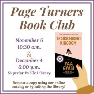 ![]() ![]() Join the library’s Page Turners Book Club and enjoy lively book discussions with other eager readers! Our selection for November is Transcendent Kingdom by Yaa Gyasi, a novel about faith, science, religion, and family that tells the deeply moving portrait of a family of Ghanaian immigrants ravaged by depression and addiction and grief. Book club… |