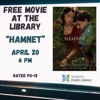 The library will offer a free showing of the Oscar-winning film, “Hamnet,” on April 20 at 6 p.m. Set in late 16th-century England, this film starts Jessie Buckley as Agnes, a healer sensitive to the world around her, who builds a home with William (Paul …